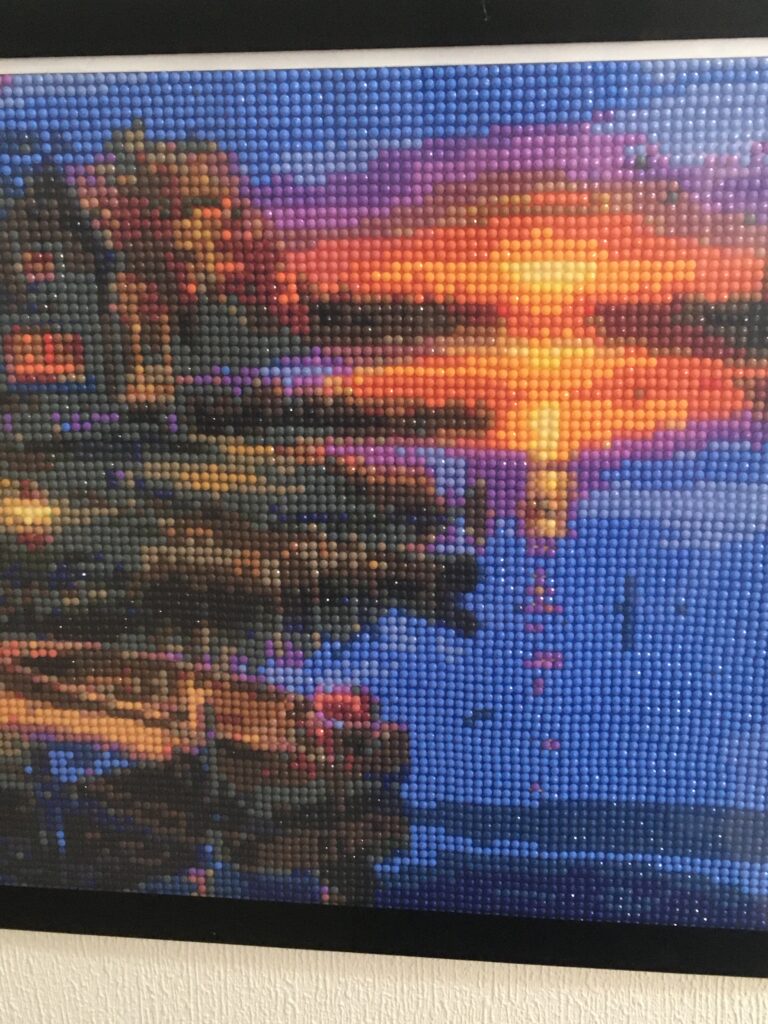 皆様常日頃誠にお疲れ様です。ここから未来内の夕映えの水面のビーズ絵です。何処かの池か湖の様です。平塚在住時、時々夕方に(時々昼間にも)西隣の大磯の海岸を徒歩で往復していました。沈みゆく西日に照らされた相模湾が秀麗でした。山から見渡しても見事ですが、浜辺から開かれた海面もまた魅せるものがありました。横浜みなとみらいに行ったときにも、夕陽が橙色に輝かせる東京湾が素晴らしいものでした。