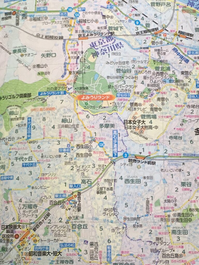 皆様常日頃誠にお疲れ様です。前回レーズンサンドを銀座で買ったと書きましたが、その日の夕方に思い出してみたところ、レーズンサンドはレーズンサンドなのですが、レーズンサンド風マカロンだったかもしれません。となると、西洋銀座の銀座マカロン(ラム酒漬けレーズンとコクのあるバタークリームを薄い艶やかなマカロン生地で挟んだ洋菓子。いわばマカロンのレーズンサンド)かと思います。過去のことでそうした記憶違いは往々にしてあるものです。画像のよみうりランド周辺地図のその一種として載せました。