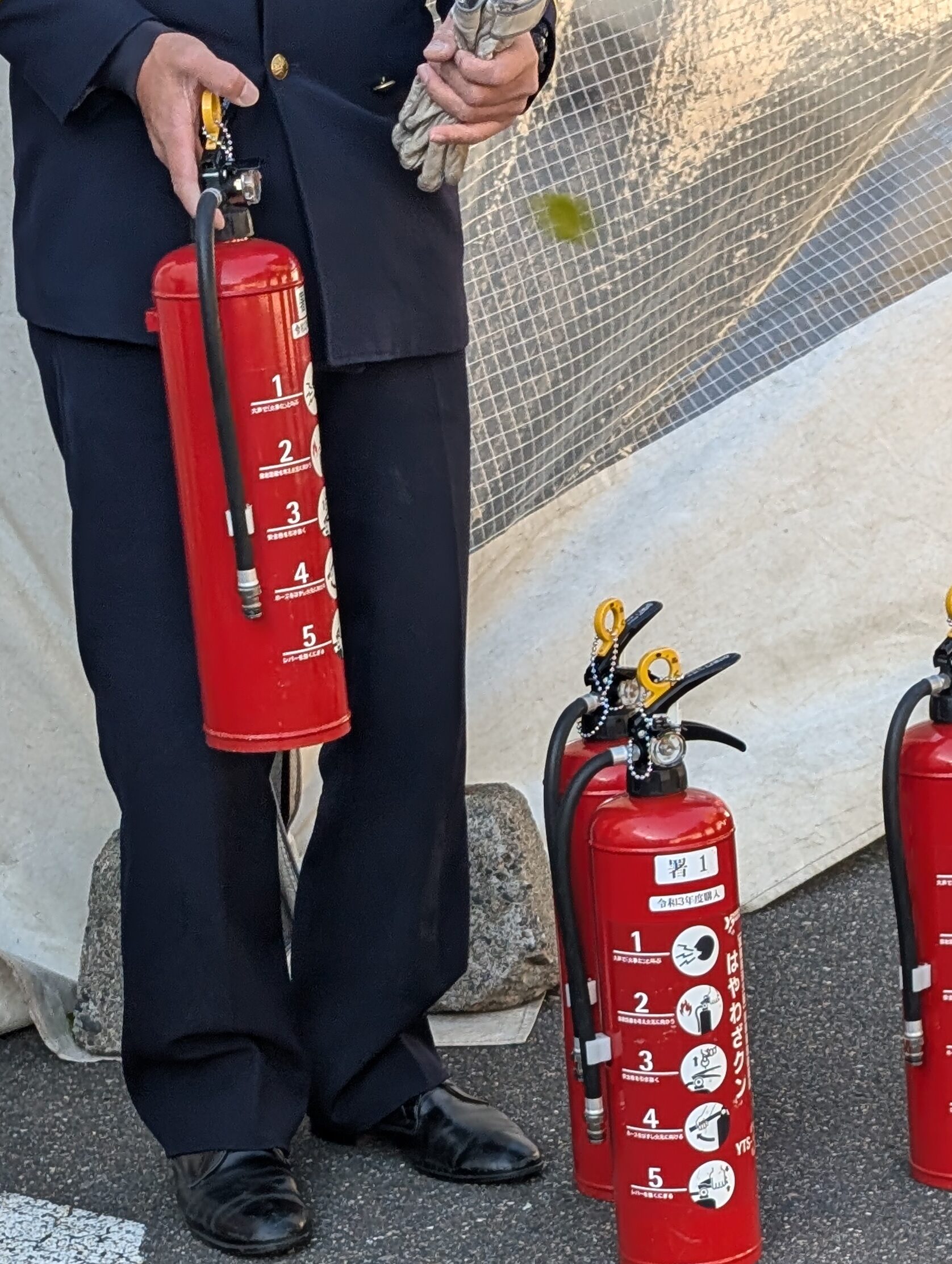 ↑消火器の使い方を説明したいただいている様子。