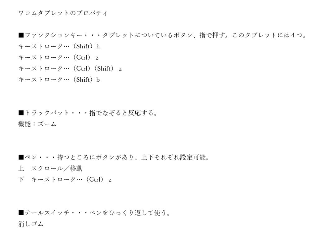 タブレットのボタン機能を自分が使いやすくなるように設定しながら使用しています。ペンとファンクションキー、トラックパットにそれぞれ機能を設定してます。作業効率が良くなったような気分になります。