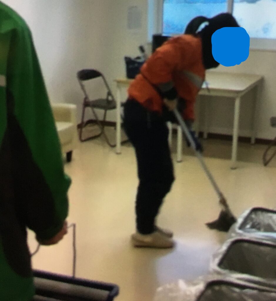 事務所と休憩スペースと廊下の清掃を行いました。