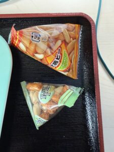 その夜の夕食の主菜は、2月初のチキンカレーでした(材料は、チキンカレーなので当然ながら鶏肉、ピーマン、キャベツ、玉葱、カレールー)。他は、舞茸・大根・キャベツ・寒天の味噌汁、椎茸・大根・キャベツ・インゲン・(おそらく)ブロッコリーの煮物、ゴーダチーズ(よつ葉乳業。2月1日のゴーダチーズと同じです)、ヨーグルト、蜜柑でした。デザートには、ビスコ5枚(連日プレーンです)及び自主冷凍・解凍済みセイコーマート草大福を食べました。とりあえず、具材は滑っても零さずには済みました。今回は以上になります。お読みいただき誠に有難うございます。つつがなき日々でありますように。